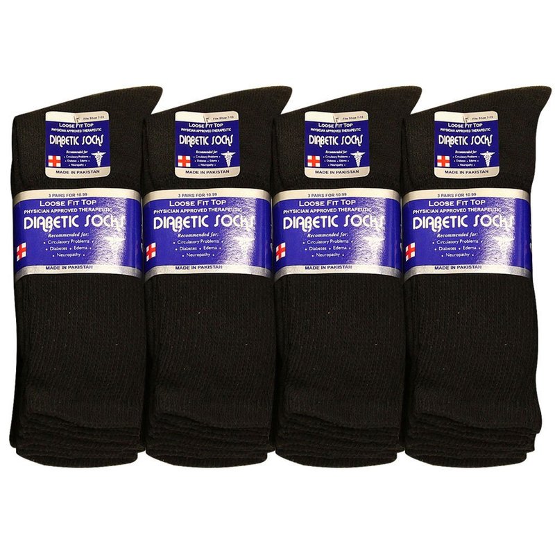 Falari Diabetic Socks Men Unisex Size 9-11 Black 63-7040-12PAIRS