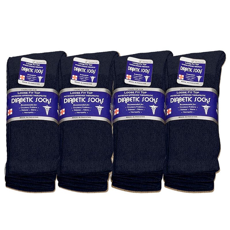 Falari Physicians Approved Diabetic Socks Crew Unisex 3, 6 or 12-Pack (10-13, 12 Pairs Navy)