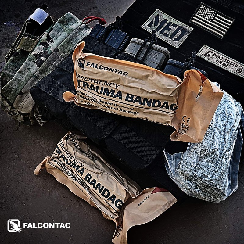 FalconTac Emergency Trauma Bandage is designed to stop bleeding from hemorrhagic wounds caused by traumatic injuries in a rapid, extremely effective, and easy way. Besides the combat field proven design, this trauma dressing bandage also provides large effective coverage with 5-years shelf life.