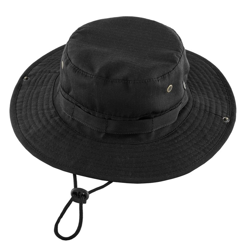 FALETO Outdoor Boonie Hat Safari Fishing Hats Sun Hat UV Protection Foldable Military Cap Wide Brim Breathable Black