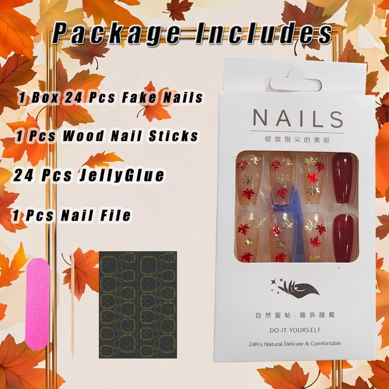 - Say Goodbye To Nail Polish: You'll have a salon-quality manicure in just a few minutes, with no long waiting times. Nails can be reused. If the autumn false nails is not damaged, it can be reused again after removal.