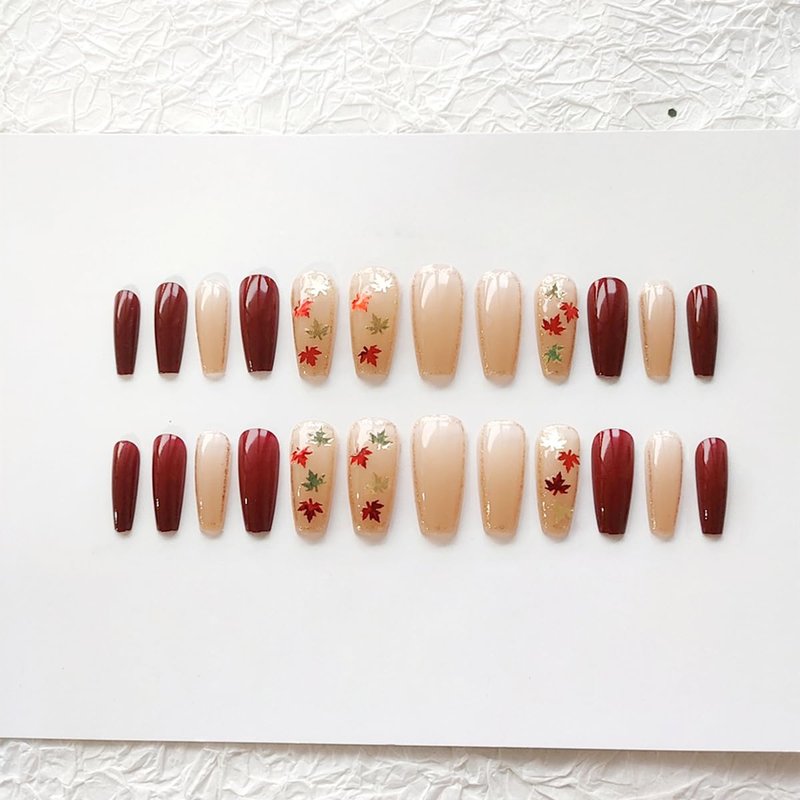 - Service Guarantee: If you have any questions about this long coffin maple leaves fake nails, please feel free to contact us by email. We will reply to you within 12 hours and try our best to solve your problem.