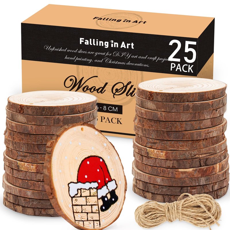 - DIY Projects: Falling in Art natural wood slices are suitable for various art and craft projects, hand painting, photo transfer, pyrography, background wall decoration, Christmas ornaments, and wedding centerpiece settings. Hang them with twine, then you can create a special scene.