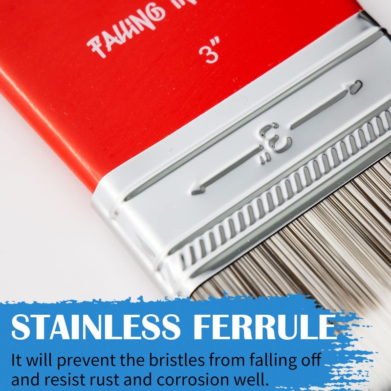 - Stainless Steel Ferrule: Falling in Art paddle paintbrush features a stainless steel ferrule that connects the handle and the brush head tightly. It will prevent the bristles from falling off and resist rust and corrosion.