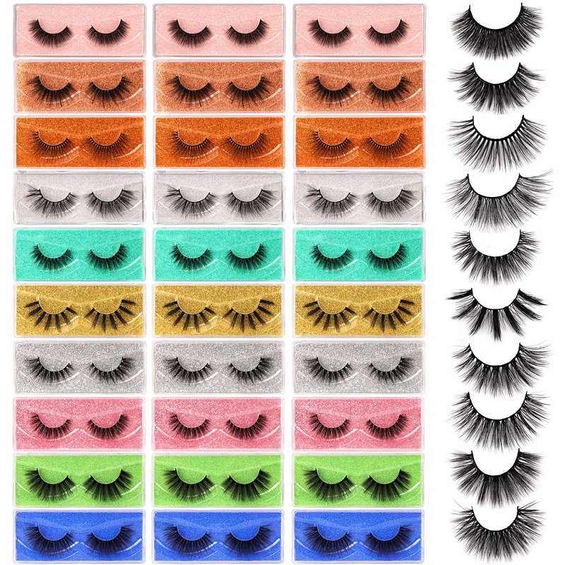 False Eyelashes 30 Pairs Natural 3D Faux Mink Lashes Pack Handmade Eye Lashes Wholesale 10 Styles