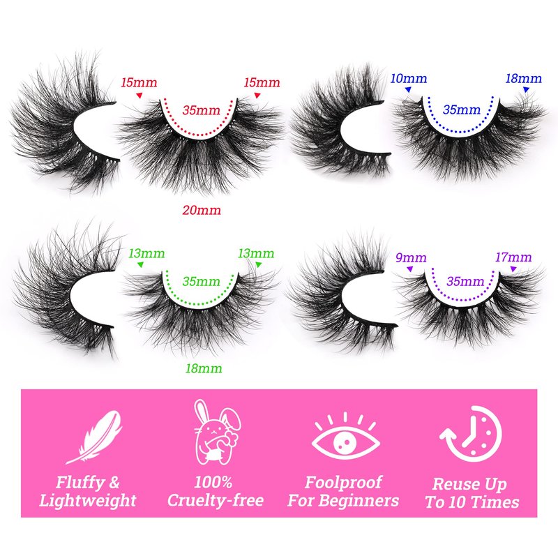 False Eyelashes Fluffy Lashes Mink 20MM Wispy Fake Eyelashes 4 Styles Mixed Strip 20 Pairs Eye Lashes Pack by Focipeysa