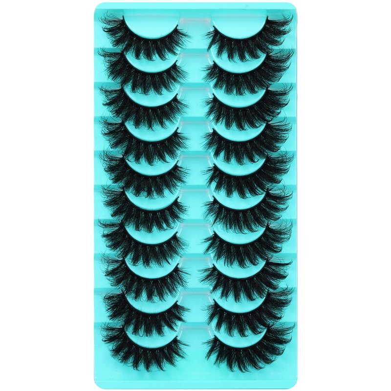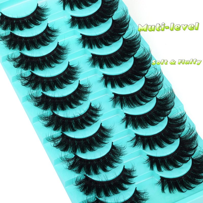 False Eyelashes Fluffy Mink Cat Eye Lashes Strip Pack 10 Pairs 18MM Wispy D Curl Fake Lashes That Look Like Extensions 8D Full Dramatic Eyelash by Goddvenus