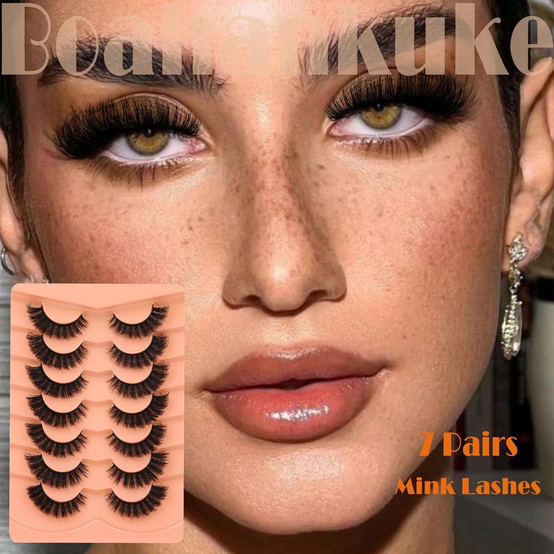 False Eyelashes Fluffy Mink Lashes Long Full Eyelashes 200D Wispy Thick Russian Strip Lashes Cat Eye Volume Lash Strips D Curl Dramatic 7 Pairs Fake Lash Extensions by Boahankuke