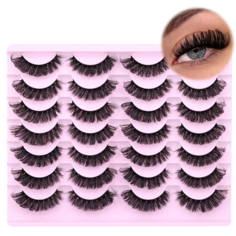 False Eyelashes Fluffy Russian Strip Lashes D Curl Fake Eyelashes Extension Wispy Cat Eye Lashes Handmade Soft Reusable 14 Pairs Lashes Pack