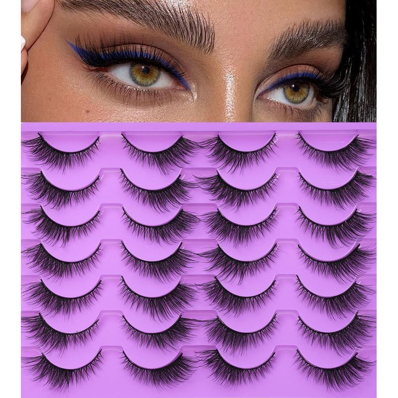 False Eyelashes Fox Cat Eye - Wispy Fluffy Strip Eyelashes 16mm Cat Eye 6D Faux Mink Fake Eyelashes Pack 14 Pairs by EMEDA(HX2-1)