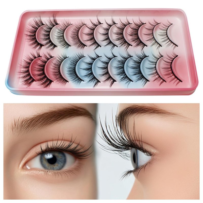 False Eyelashes, Natural lashes Wispy Mink Lashes Fluffy Eye Lashes,Mink Lashes,Lash Strips that Look Like Extensions 10 Pairs Pack