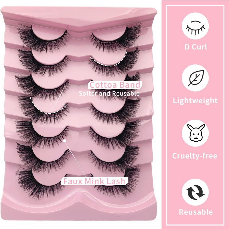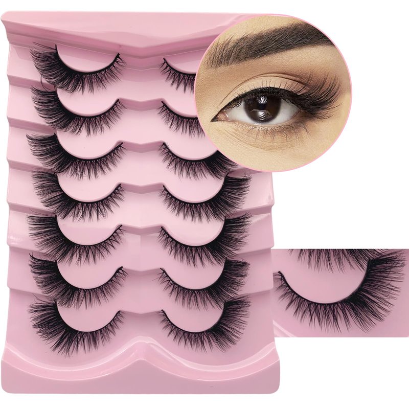 False Eyelashes Natural Look Cat Eye Lashes Wispy False Lashes Mink Fox Eye Lashes Strip that Look like Extensions 16mm Fake Eyelashes Pack