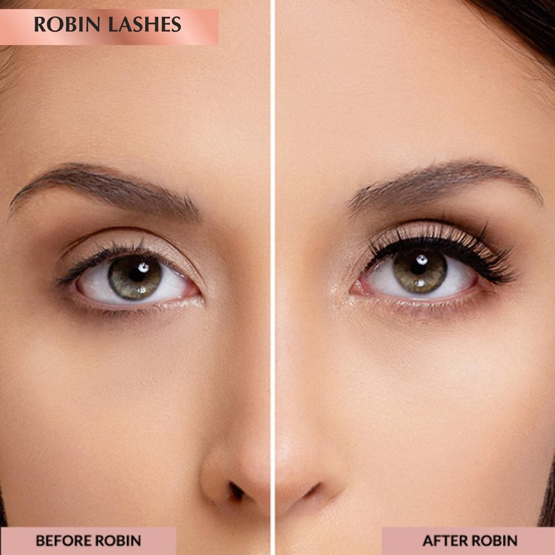 - ROUND SHAPE WITH EYE-OPENING C CURL: Robin lashes have a unique round shape, longest at the center and tapering at the edges. Paired with a C curl, these wispy lashes open up the eye, emphasizing your natural beauty and making your iris sparkle.