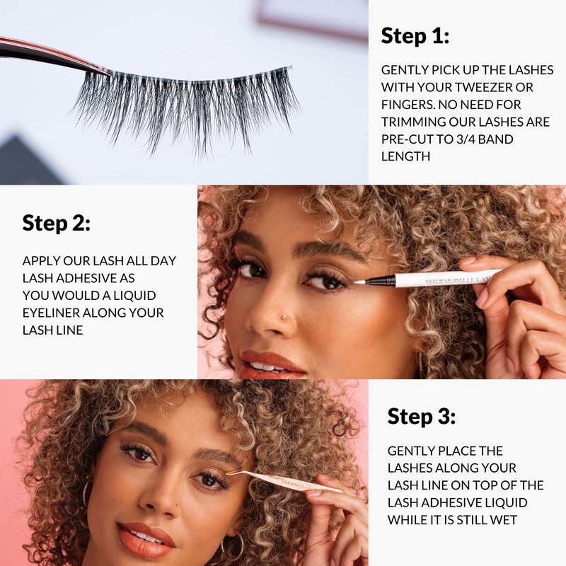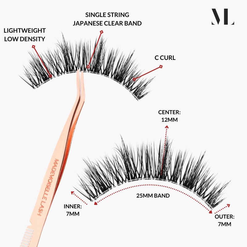 - BEGINNER-FRIENDLY 25MM INVISIBLE BAND: Designed for effortless application, Robin strip lashes feature a 3/4-length clear band lashes. No trimming required—simply apply the adhesive and press on for a secure, natural fit that’s perfect for beginners.