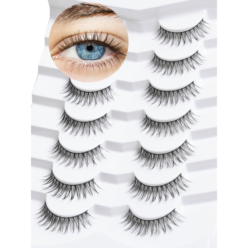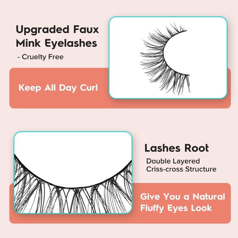 - VEGAN & REUSABLE: 7 pairs lashes pack. The fake eyelashes use ultra-light faux mink fibers, cruelty-free, skin friendly. Bring pretty lashes extension look without damaging your own eyelashes, suit for DAY-TO-DAY use, party and so on