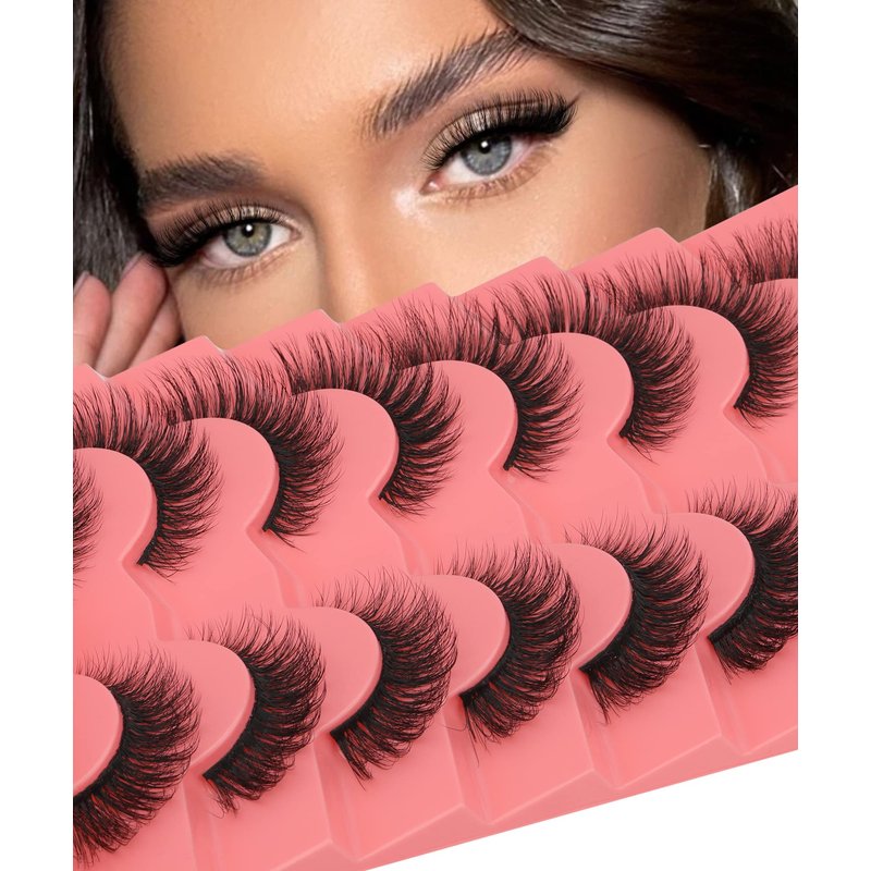 False Eyelashes Natural Mink Lashes 15mm Wispy Curl Eyelashes 5D Fluffy Volume Cat Eye Fake Lashes Pack 8 Pairs by Yawamica