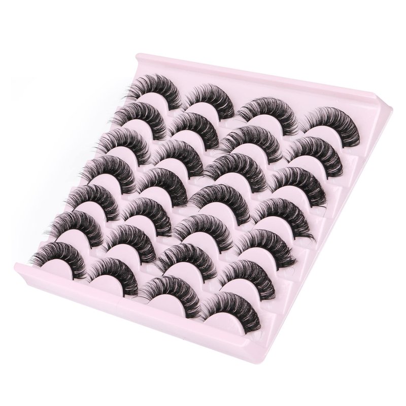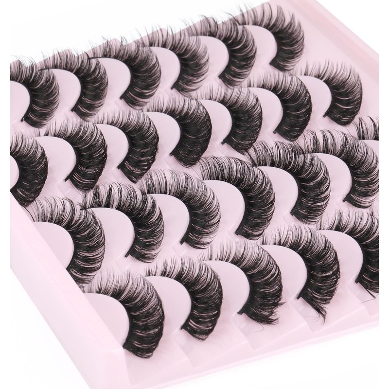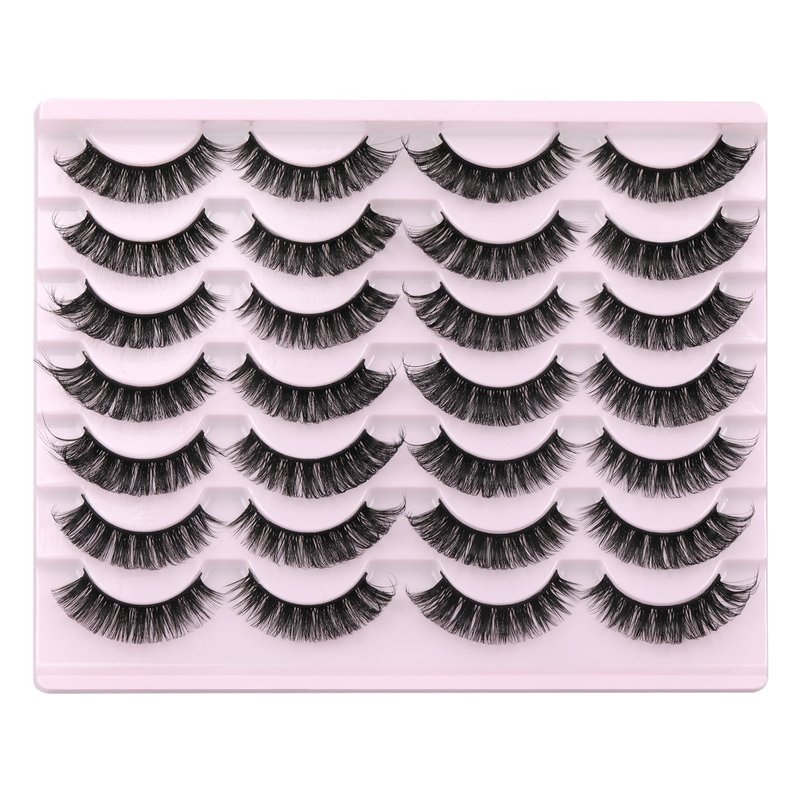 False Eyelashes Russian Strip Lashes Fluffy Fake Eyelashes Extension D Curl Wispy Handmade Soft Reusable 14 Pairs Lashes Pack
