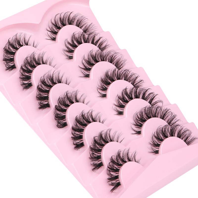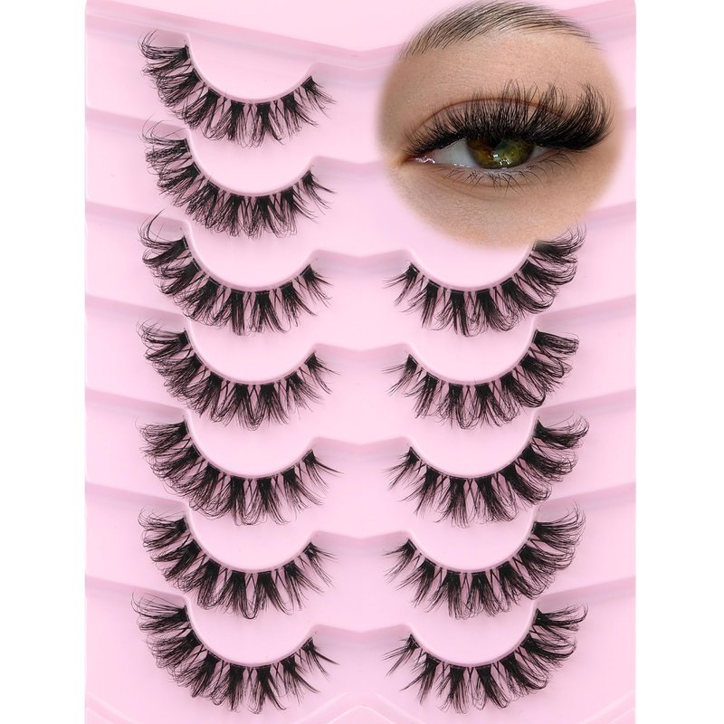 False Lashes Natural Look Fake Eyelashes Wispy Cat Eye Lashes Clear Band False Eyelashes 16MM Faux Mink Lashes Pack 7 Pairs by Ruairie