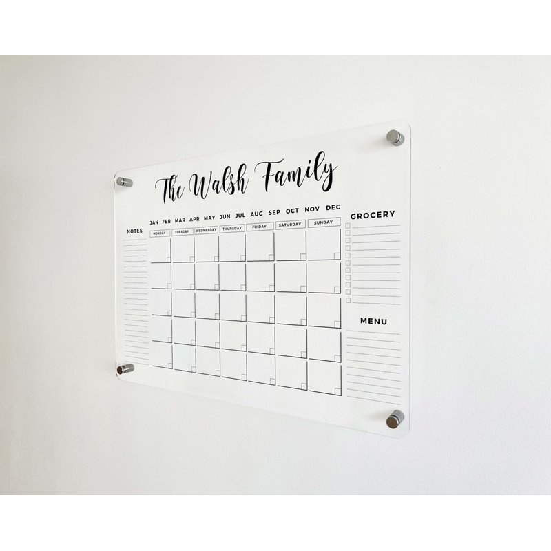 FAMILY NAME CALENDAR Personalized Acrylic Wall Calendar - Personalized Calendar 2024, Horizontal Wall Calendar, Monthly and Weekly Calendar, Housewarming Gift, Goals, To Do