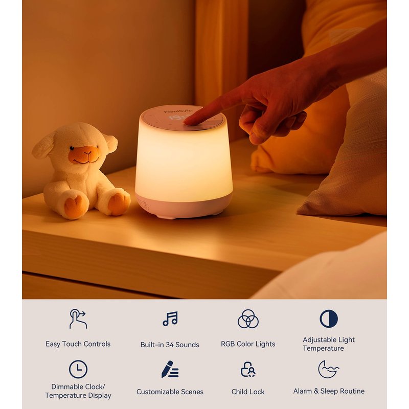 FamiSym White Noise Sound Machine for Baby Kids, Nursery Night Light, Alarm Clock, Dimmable Clock & Temperature Display, 34 Soothing Sounds, Toddler Sleep Trainer, Baby Sound Machine for Sleeping