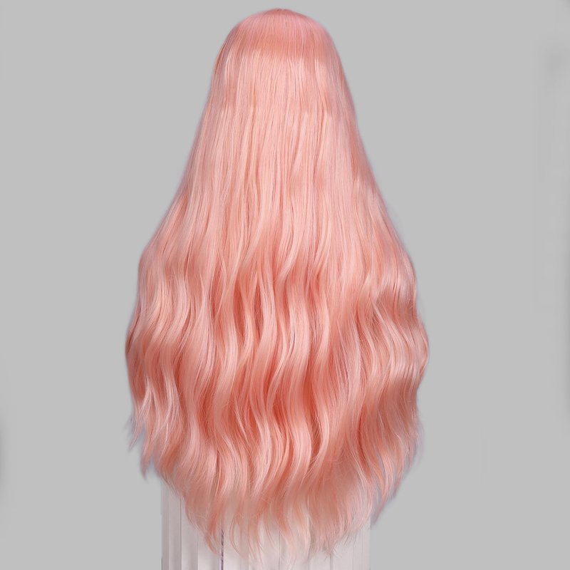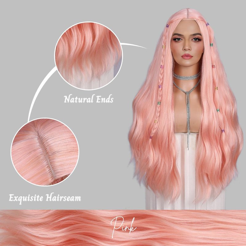 Fancy Hair Peach Pink Wavy Wig 28 Inch Natural Wavy Curly Synthetic Wig for Women Long Pastel Pink Middle Part Wig for Halloween Party Cosplay Daily Use