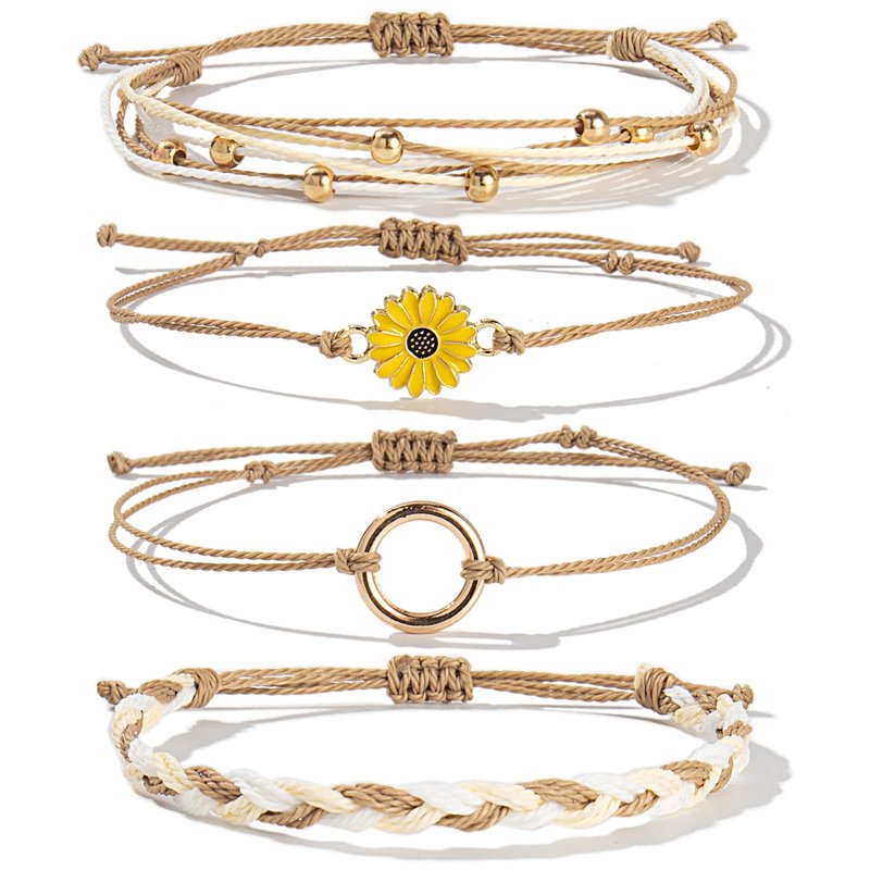 FANCY SHINY Sunflower String Bracelets Cute Beaded Handmade Rope Bracelet Set Adjustable Braided Circle Charm Bracelet Pack for Teen Girls Women(Sand)