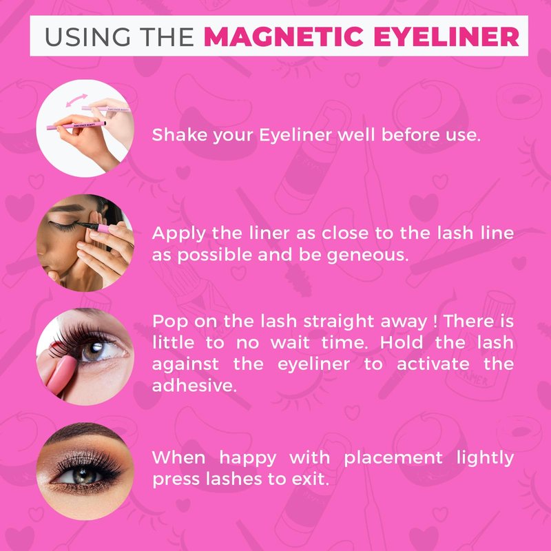 - All-Day Hold: Our Magnetic Eyeliner ensures your magnetic lashes stay in place from morning to night, no matter what your day brings.