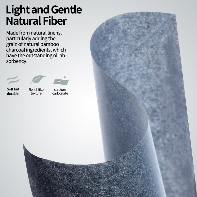 - Blotting paper for oily skin, made with natural linens, particularly adding the grain of natural bamboo charcoal ingredients, which have the outstanding oil absorbency. The paper is soft but not easy to tear, and it has a clean, relief-like texture. This product is gentle on the skin and won't clog pores.