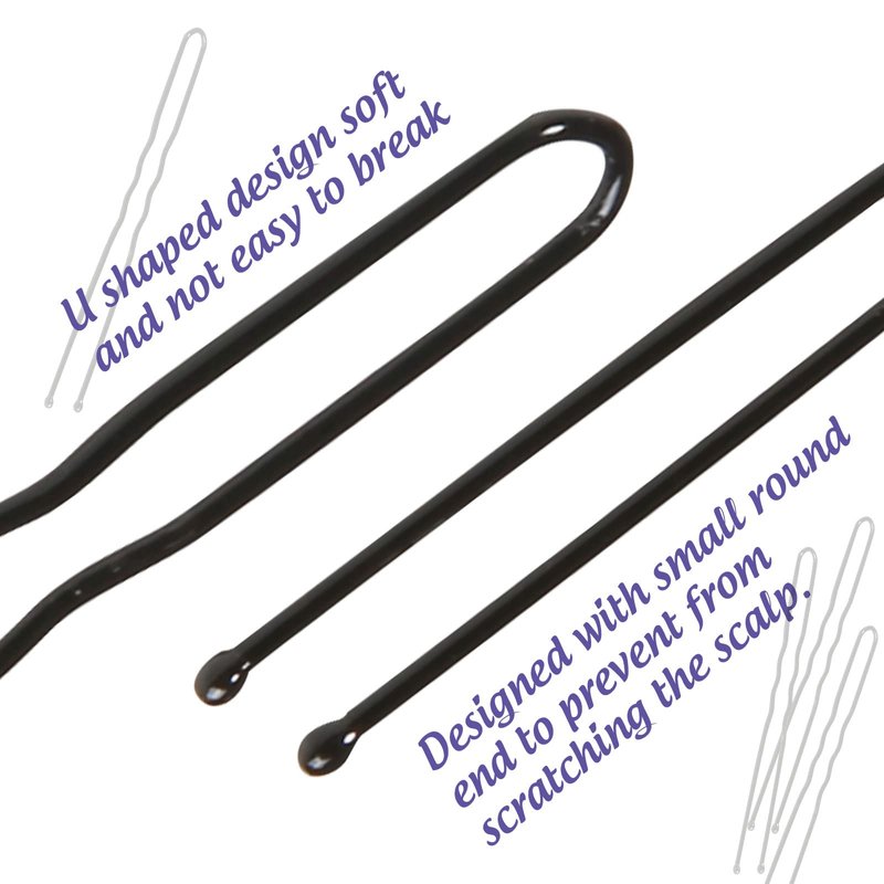 - Hair Accessories Tools: The hair bun pins are made of good quality metal and not easy to break Designed with small ball ends which can prevent from hurting your hair and scratching the scalp. Useful tools to hold your hair in place and avoid falling down. Elastic hair bands help you to make a pony tail or fix the hair around the donut bun.