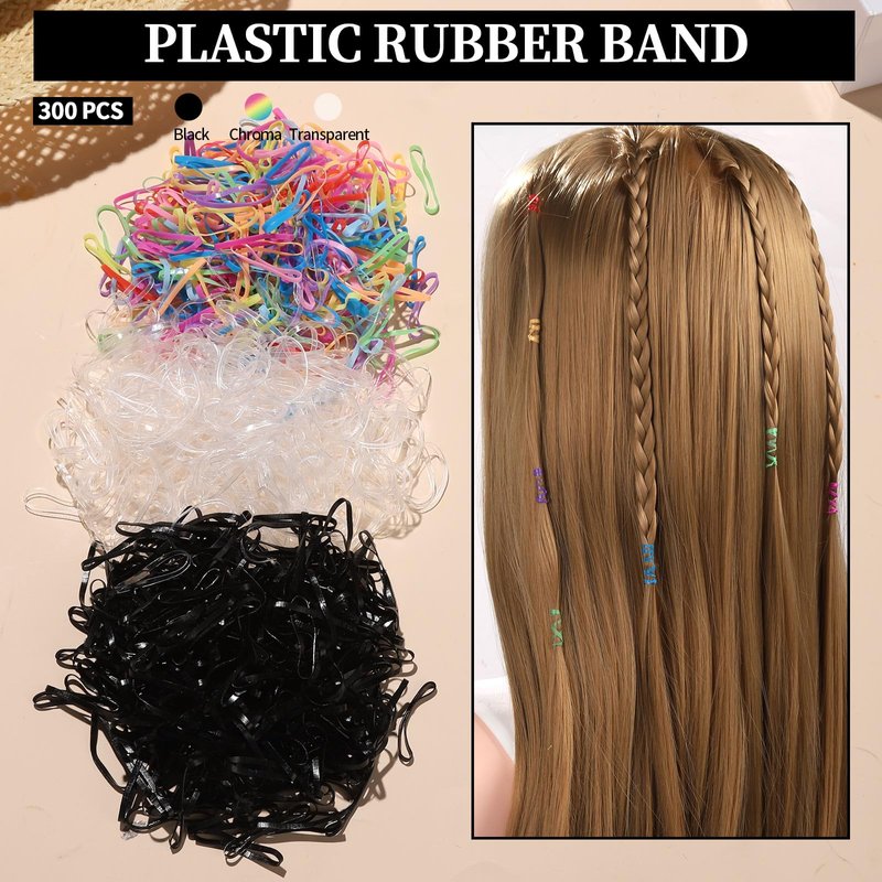 - Hair Ties Kit: Includes 900pcs rubber elastic hair bands( clear, black and colorful) each 300pcs + 10pcs 4mm black elastic hair ties + 5pcs velvet scrunchies for hair+ 30pcs 4mm seamless hair ties in 6 colors and each color 5pcs + 50pcs 2mm hair ties in 5 colors and each color 10pcs + 30PCS 5cm hair pins(black, brown, gold) and each color 10pcs + 30pcs 6cm U shaped hair pins hairs(black, brown, gold) and each color 10pcs and 10pcs black hair clips. 1pcs rat tail comb & 2pcs topsy tail.