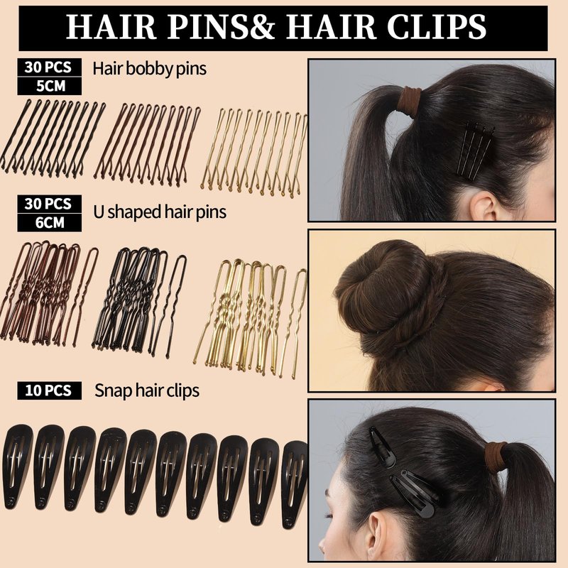 - Practical Hair Pins& Hair Clips: The hair bobby pins and U shaped hair pins are made of good quality metal and not easy to break for long time use. 3 useful color for all types of hair. Designed with small ball ends and a protective coating on the surface, which prevents from hurting your skin and scratching the scalp when using. Essential hair accessories for hair styling. 10pcs snap hair clips to hold your hair and avoid falling down. Suitable for daily wearings and many occasions.