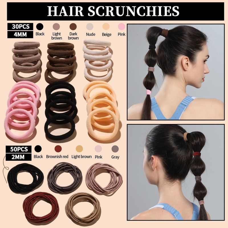 - Variety Elastic Hair Ties: The 4mm black hair ties is high elastic and strong, will not snag or pull your hair, soft to the hair. The 4mm seamless cotton hair ties have 6 classic and natural colors, suitable for adults, soft and strong, ideal for work, study, sports, gym, housework. The 2mm elastic hair ties also have 5 colors for adults and children. One kit includes various types, colors and sizes. You can easily select the bands you need and share the set with your family and friends.