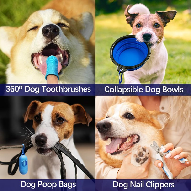- 【GREAT PUPPY GIFTS SET】Our 20 pack dog toys for small medium breed chewers includes 1 squeaky no stuffing dog toy, 3 dog rope toys, 3 rubber dog toys, 1 squeaky spikeball, 1 indestructible tennis ball for dog, 3 extra poop bag rolls, 1 bag dispenser, 1 collapsible dog bowls, 4 dog toothbrushes, 1 dog nail clippers, 1 dog nail file and 1 gift box. Best new puppy essentials, starter kit for puppies, dog birthday or puppy gifts for new owners.