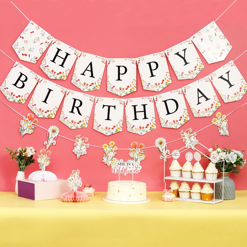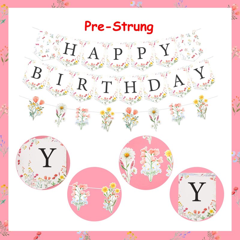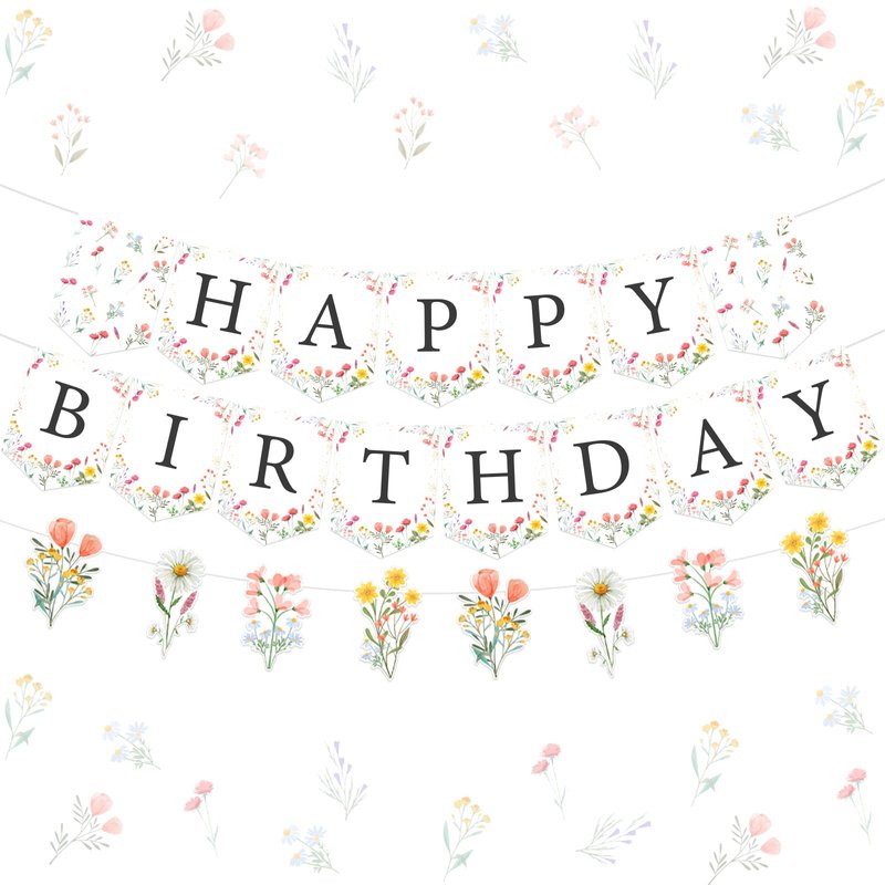 - Self-designed Wildflowers Birthday Garland: The “HAPPY BIRTHDAY” banner and wildflower garland are both pre-strung, saving your time of preparing for the party. The wildflower patterns printed on the banner are self-designed, can be unique and gorgeous highlights of your birthday party.