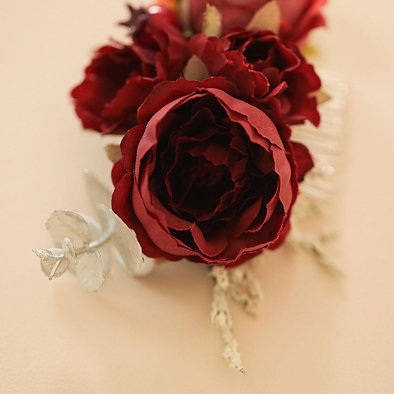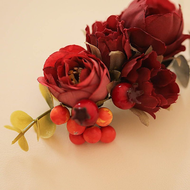 Fangsen Red Berry Rose Silver Gold Eucalyptus Leaf Burgundy Hair Comb Festival Headpiece Christmas Hair Baubles for Holiday Cosplay Women Party (#01)