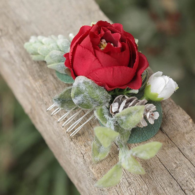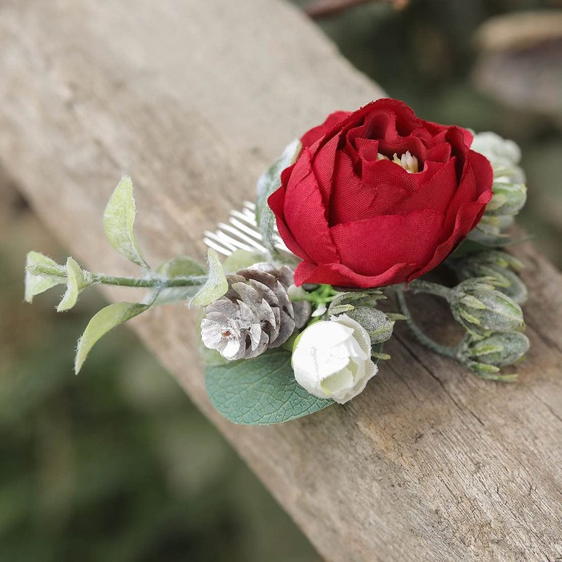 Fangsen Silver Wedding Red Rose Flower Hair Comb Boho Hair Accessory for Bridals