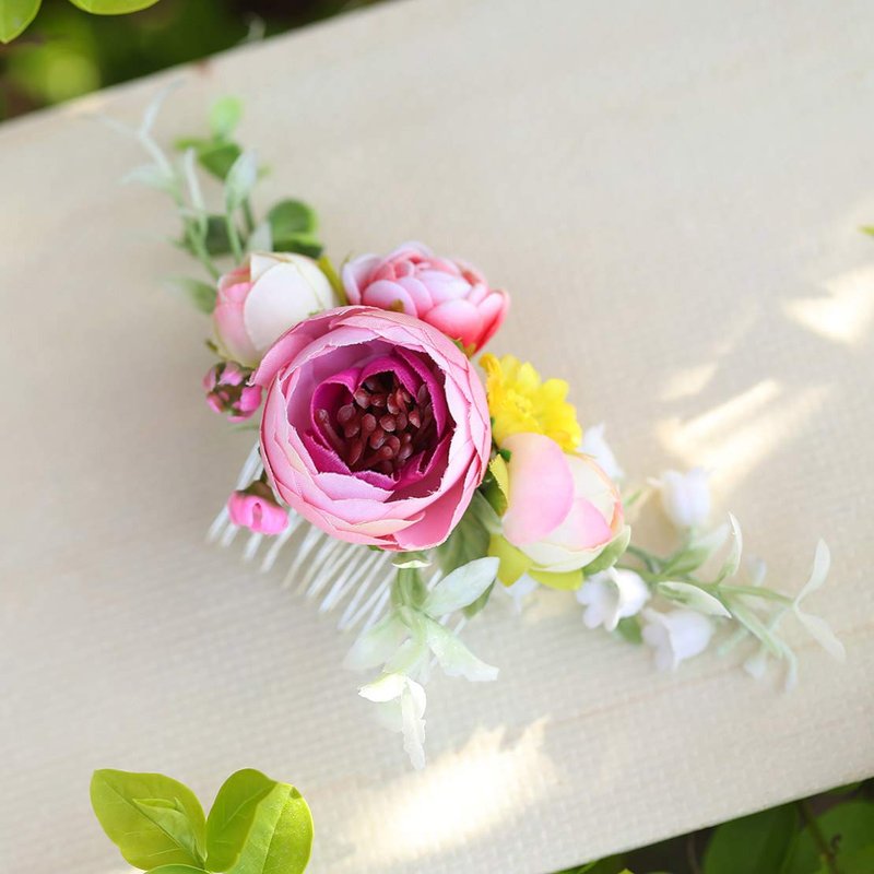 Fangsen Silver Wedding Rose Flower Pinecones Hair Comb Bridal Flower Hair Clip Floral Christmas Hair Accessories (Pink)
