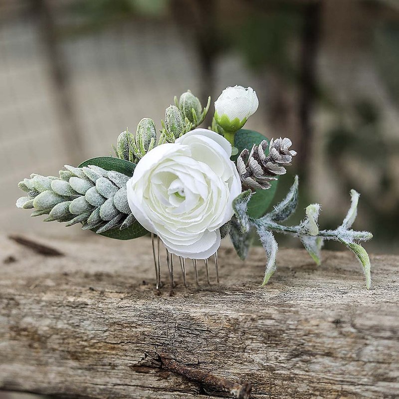 Fangsen Silver Wedding White Flower Hair Comb Boho Floral Hair accessory for Women and Girls