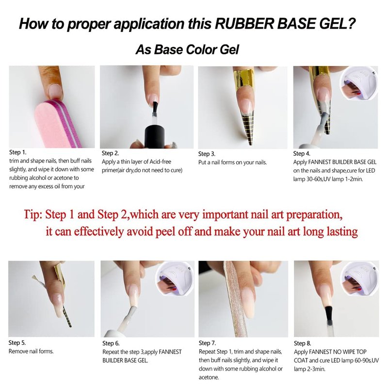 • 1.FANNEST Rubber Base Gel Polish,Can be used as Self-leveling Builder Gel & Base Coat & Sheer Color Gel & Nail Strengthener,Nail Repair Easy to extension the nails.