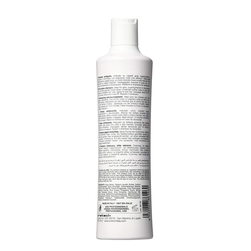 - Antioxidant Ingredients - This anti brass purple shampoo is enriched with extra violet pigments to maintain a cool & even tone. Infused with antioxidant grape extract + silk protein ingredients to effectively re-tone yellow hair from bleached blonde hair, while ensuring a healthy look & feel with this nourishing formula.