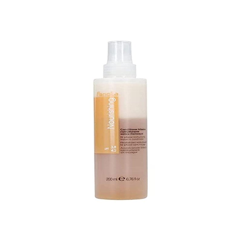 Fanola Bi-phase restructuring leave-in hair conditioner is enriched with Keratin and Milk Protein. Detangles and hydrates the hair fibre leaving hair instantly silky and shiny. Eliminates frizz, restoring strength and vitality It does not weigh hair down