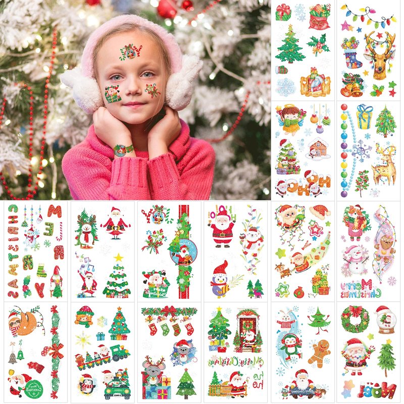 - What You Get: 16 sheets glitter Christmas temporary tattoo set for kids and adults. More tattoo styles please visit Fanoshon storefront. Fanoshon 180 days worry-free replacement service.