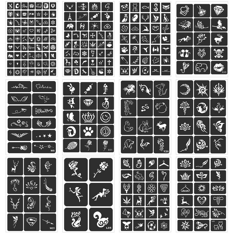 - ⯁Wide Application: You can stick airbrush tattoo stencils on your hands, arms, sleeves, fingers, wrists, face, collarbone, chest, back, feet, etc., different body parts. Experience the effect and charm of tattoos! You can also use tattoo templates to decorate windows, mirrors, refrigerators, greeting cards, posters, stones, etc.