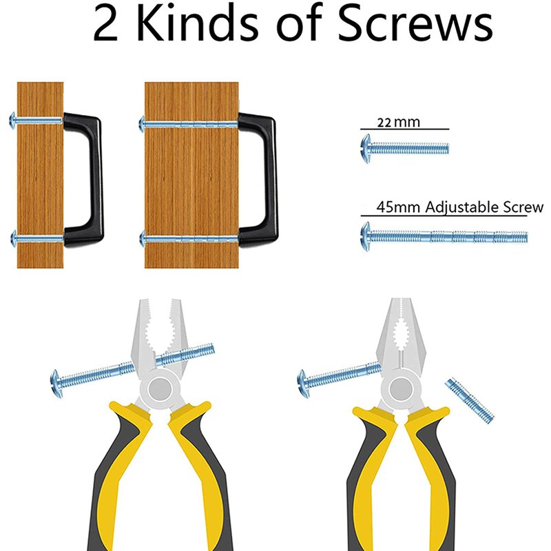 Package includes: 20 × handles, 40 × 1.77in adjustable screws and 40 × 0.86in screws