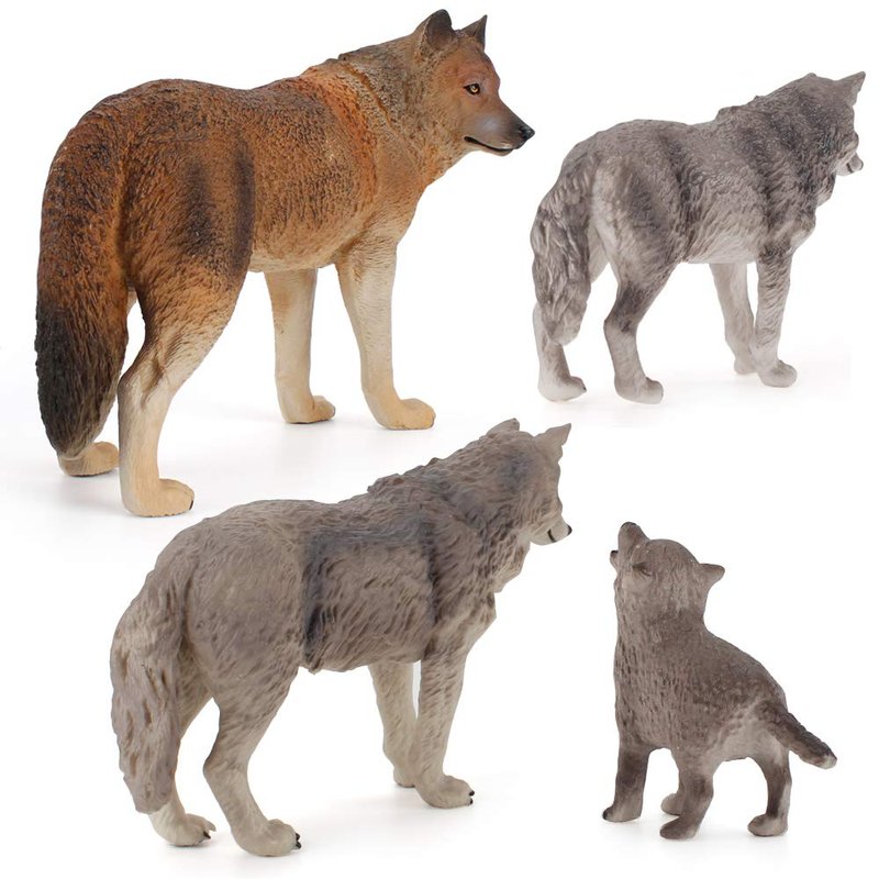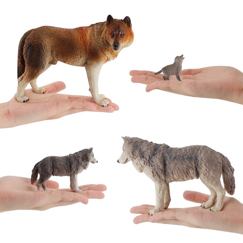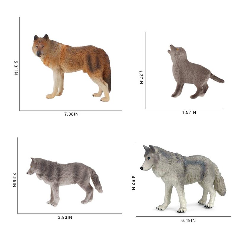Fantarea 4 PCS Realistic Wild Life Jungle Zoo Animal Wolf Figures Desktop Decoration Party Favors Supplies Cake Toppers Collection Development Set Toys for 5 6 7 8 Years Old Boys Girls Kid Toddlers