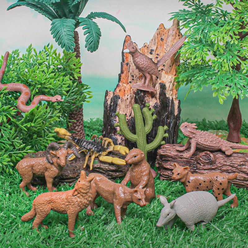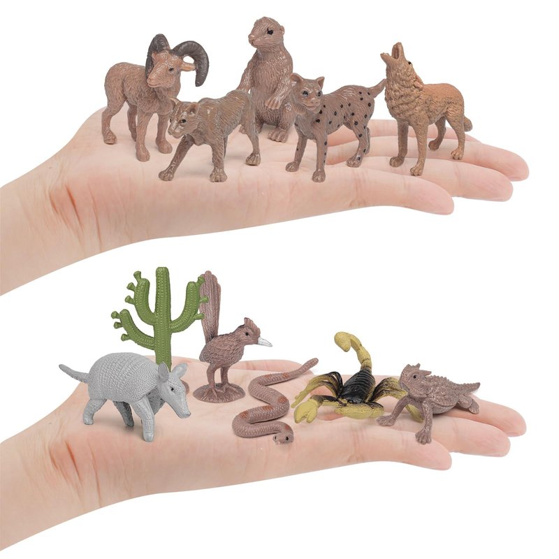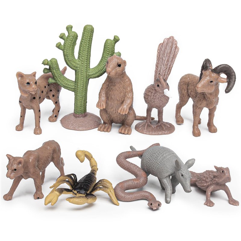 Fantarea Desert Wild Animal Model Figures Playsets 11 PCS Mini Cactus Armadillo Snake Lynx Wolf Scorpion Marmot Figurines Decoration Set Toys for Boys Girls Kids