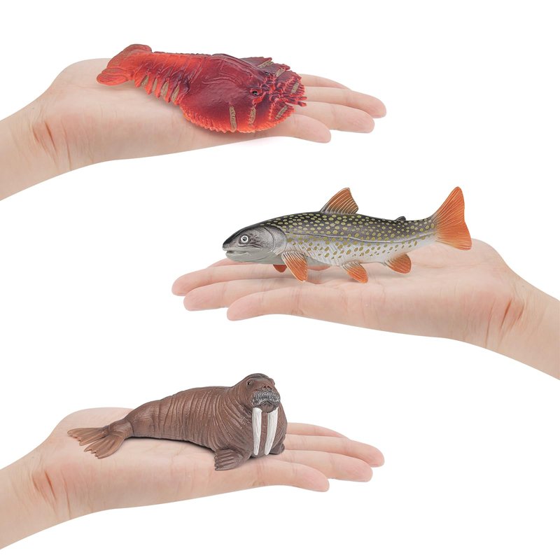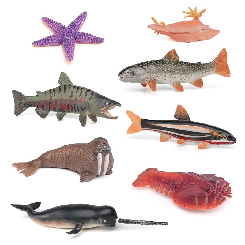 Fantarea Ocean Sea Animal Figures Model Playsets 8 PCS Salmon Walrus Narwhal Starfish Slug Figurine Party Favors Supplies Cake Toppers Decoration Gifts Collection Toys for Kids Boys Girls