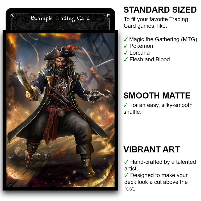 Fantasy North - Roger Vancliffe - Merciless Captain - 100 Smooth Matte TCG Trading Card Sleeves - Pirates - Fits Magic MTG Commander Pokemon and Other Card Games - Playing Card Sleeves