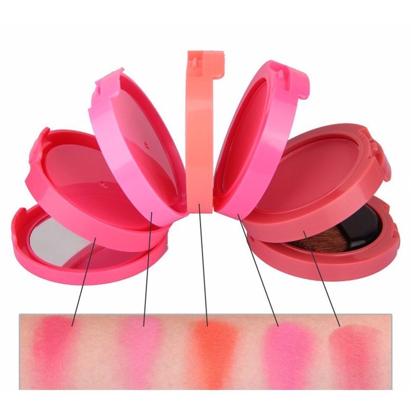FantasyDay Pro 5 Colors Compact Powder Blush/Cheek Blusher Makeup Palette Contouring Kit With Blush Brush Pressed Powder Baked Mineral Blush Set - Ideal Makeup Gift for Your Beloved One