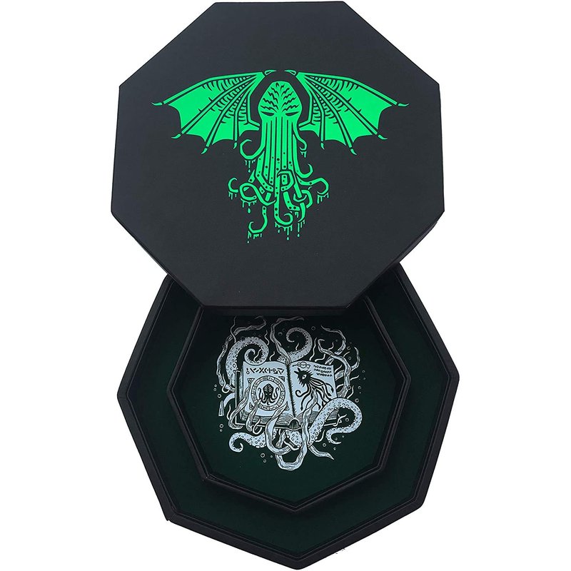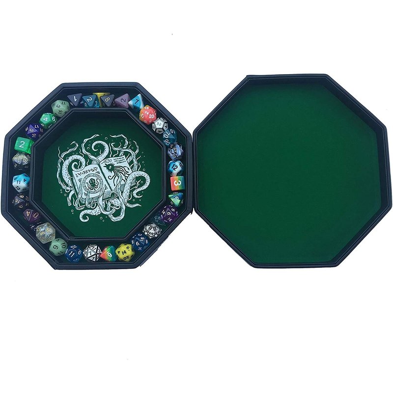 Fantasydice-Cthulhu Tome-Green - Dice Tray - 8" Octagon with Lid and Dice Staging Area- Holds 5 Sets(7 Dice Set/Standard) for All Tabletop RPGs Like D&D, Call of Cthulhu, Shadowrun.